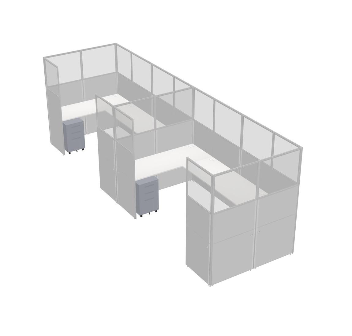 White U-shaped Panel System For 2 Person + Metal Mobile Drawers For 2 User(s)