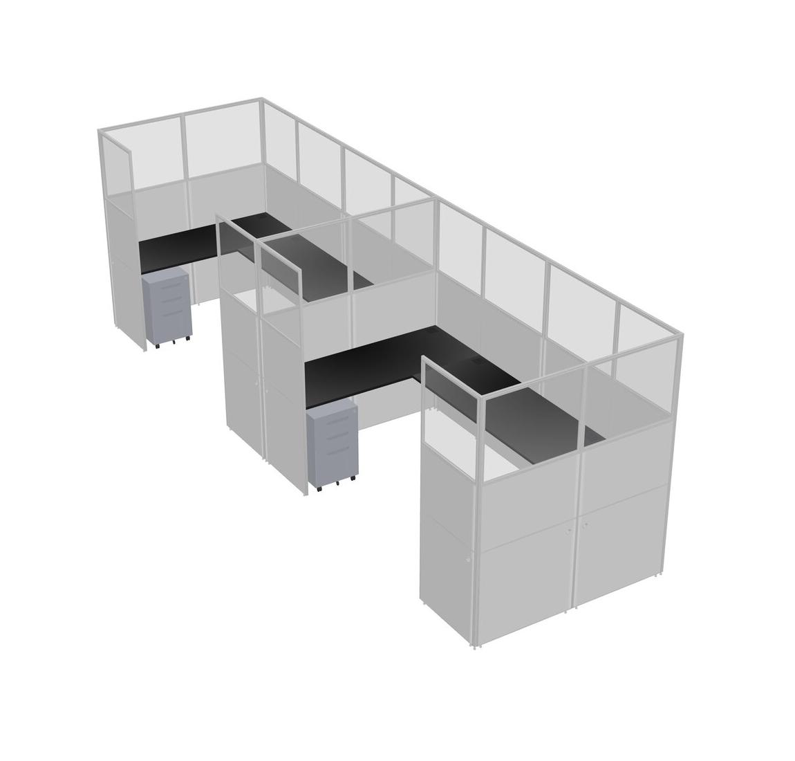 Black U-shaped Panel System For 2 Person + Metal Mobile Drawers For 2 User(s)