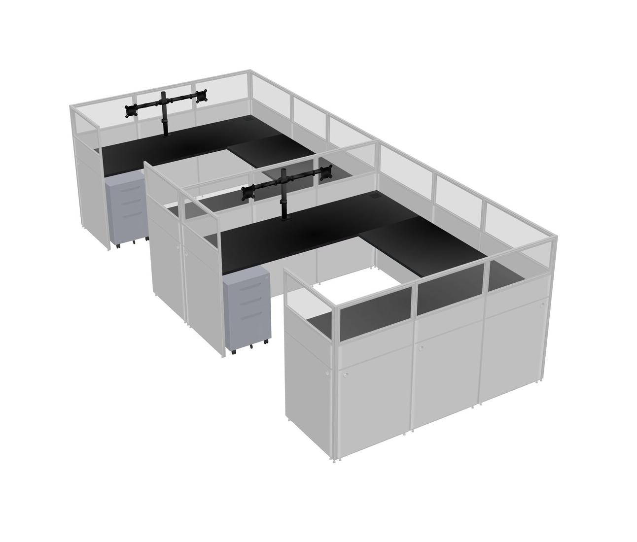 Black U-shaped Panel System For 2 Person + Monitor Arm (double Arms) + Metal Mobile Drawers For 2 User(s)