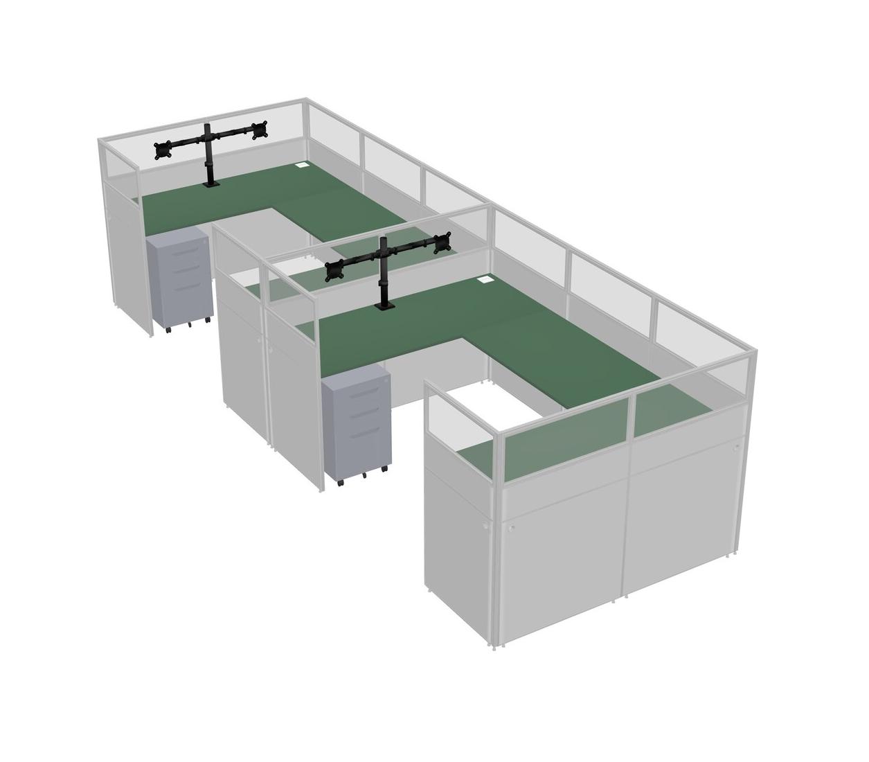 Green U-shaped Panel System For 2 Person + Monitor Arm (double Arms) + Metal Mobile Drawers For 2 User(s)