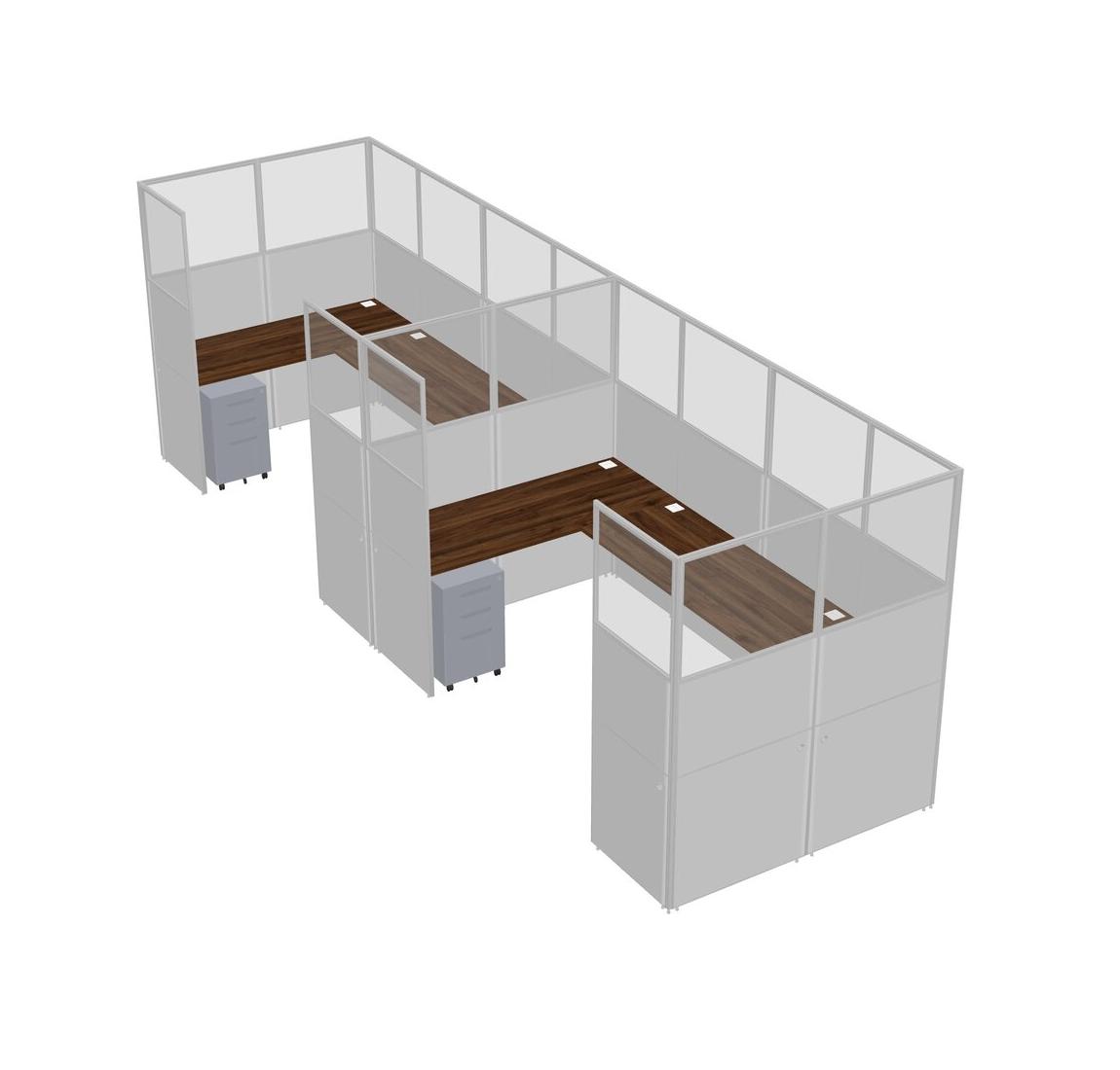 Columbia Walnut U-shaped Panel System For 2 Person + Metal Mobile Drawers For 2 User(s)