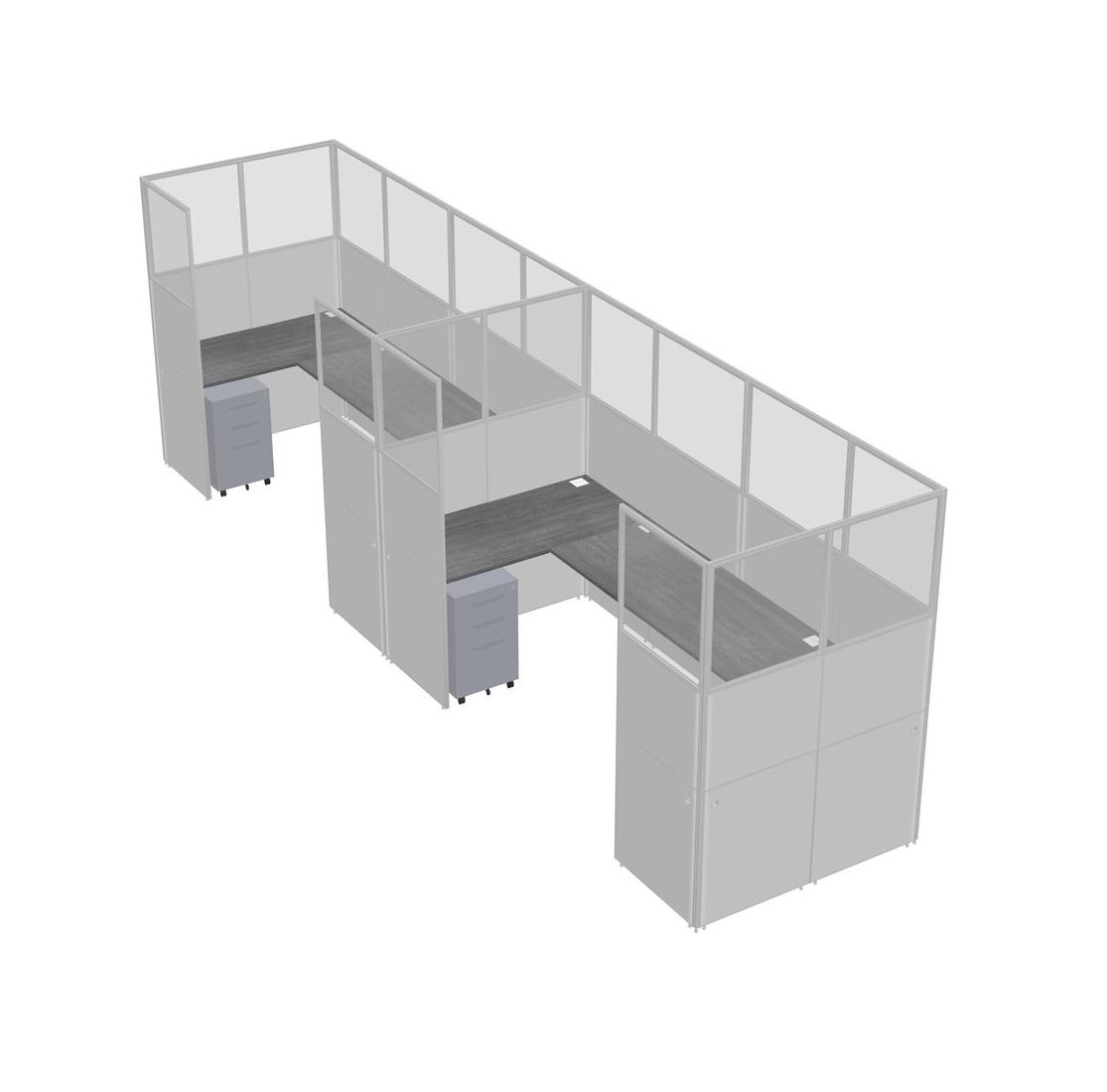 Grey U-shaped Panel System For 2 Person + Metal Mobile Drawers For 2 User(s)