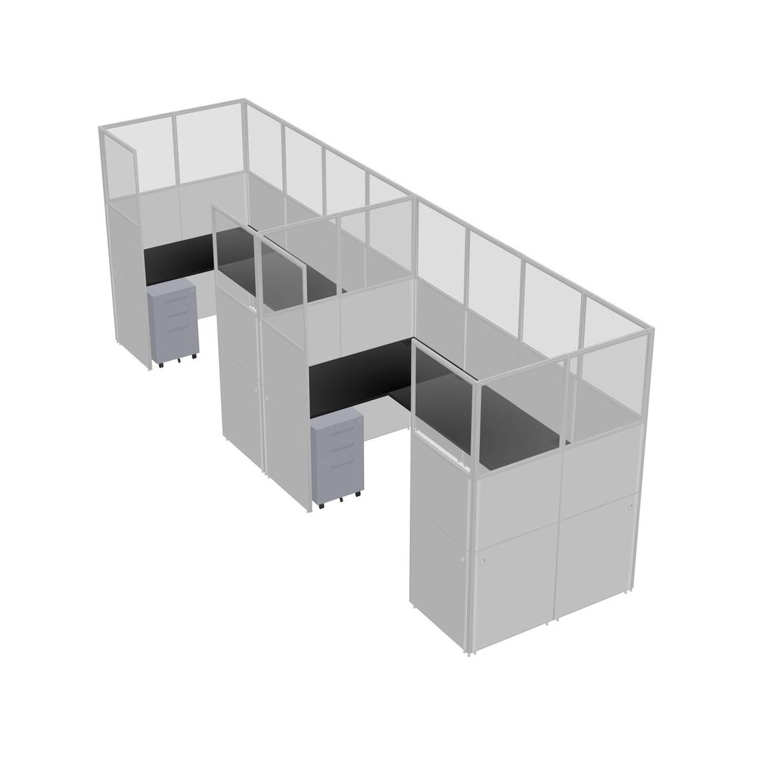 Black U-shaped Panel System For 2 Person + Metal Mobile Drawers For 2 User(s)