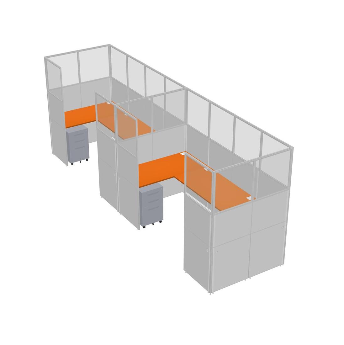 Orange U-shaped Panel System For 2 Person + Metal Mobile Drawers For 2 User(s)