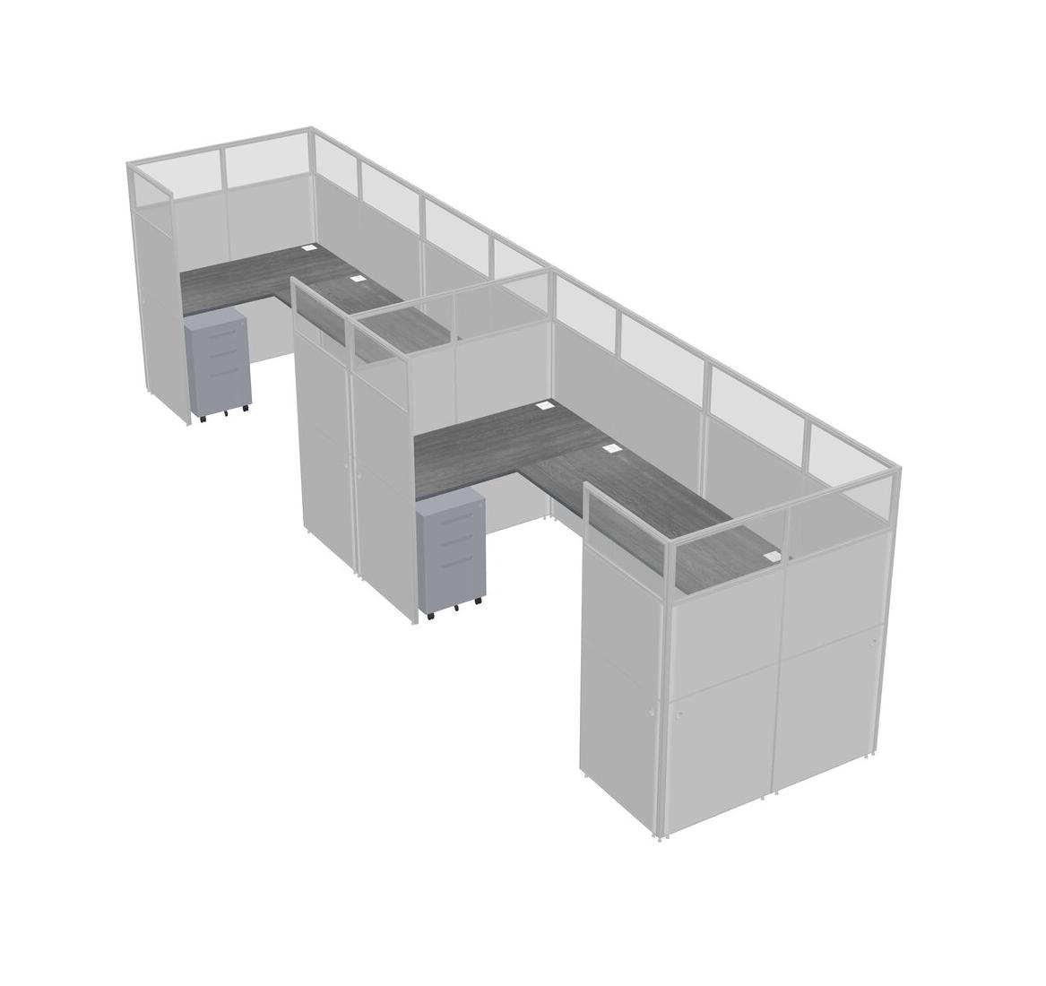 Grey U-shaped Panel System For 2 Person + Metal Mobile Drawers For 2 User(s)