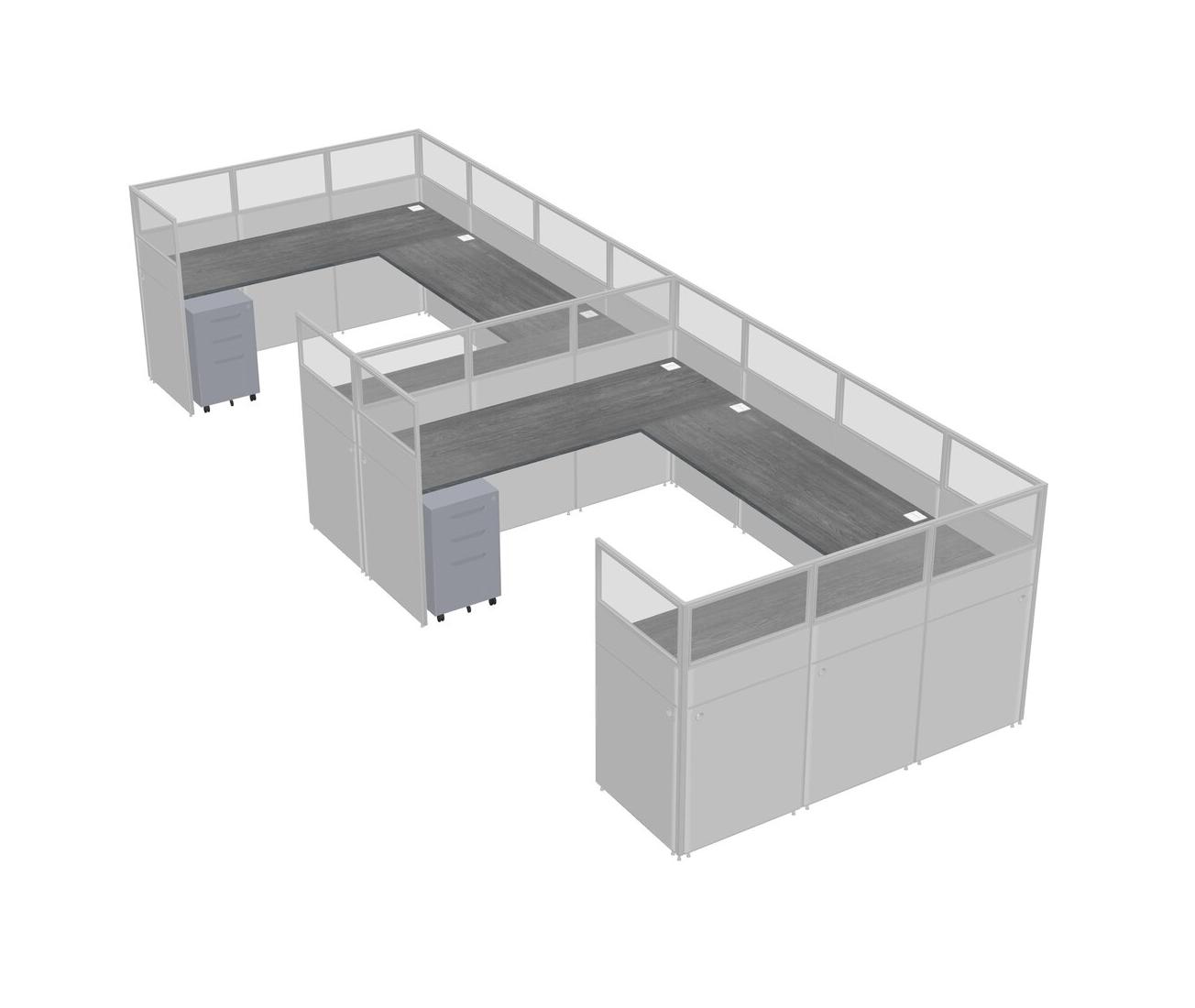 Grey U-shaped Panel System For 2 Person + Metal Mobile Drawers For 2 User(s)