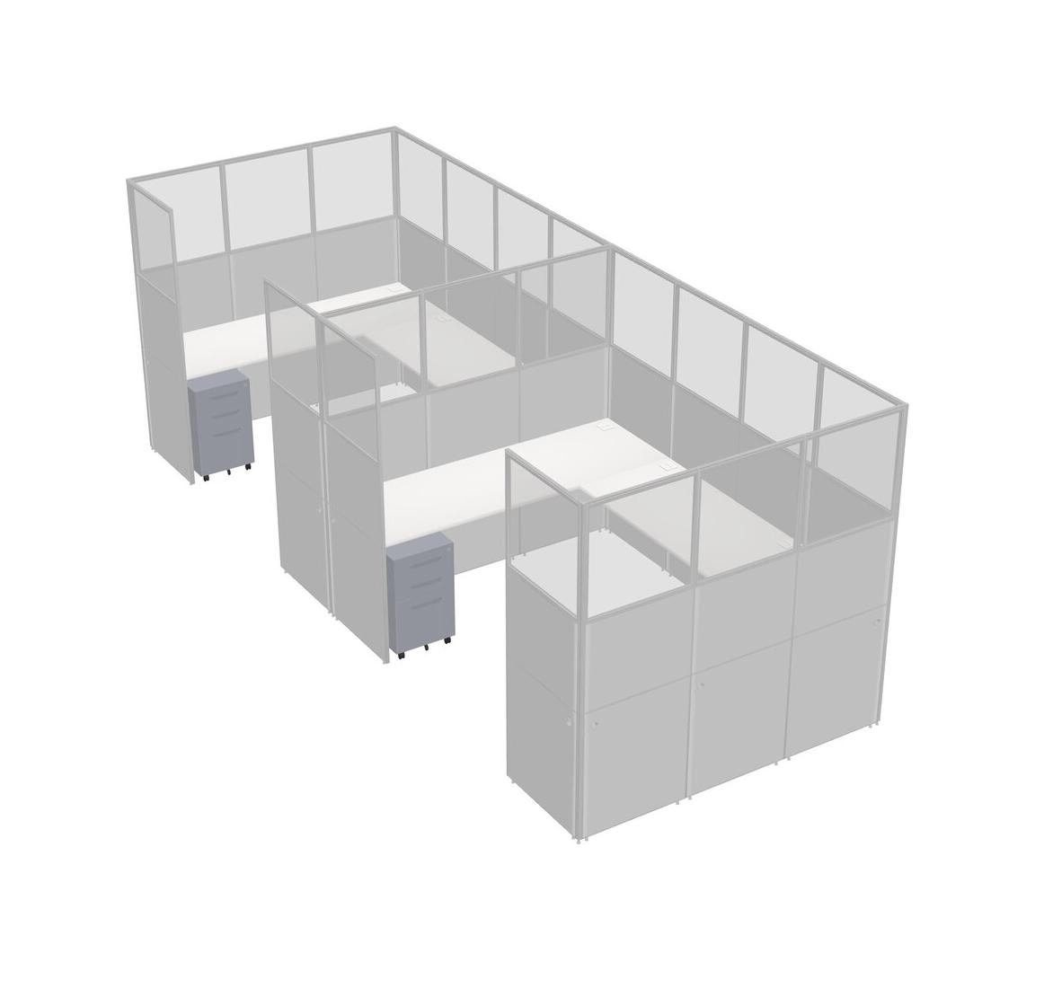 White U-shaped Panel System For 2 Person + Metal Mobile Drawers For 2 User(s)