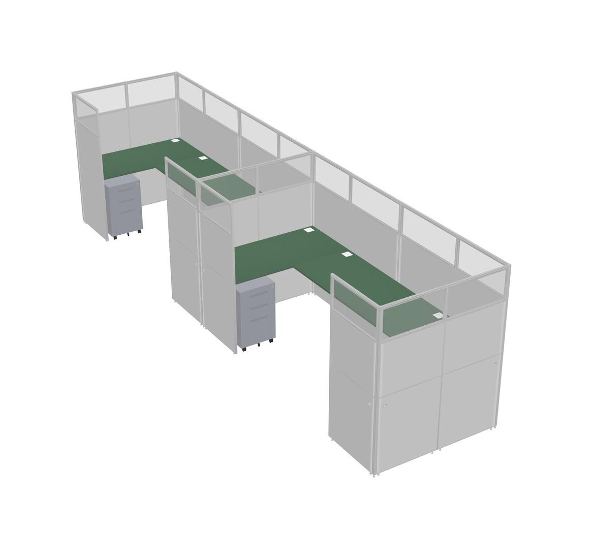Green U-shaped Panel System For 2 Person + Metal Mobile Drawers For 2 User(s)