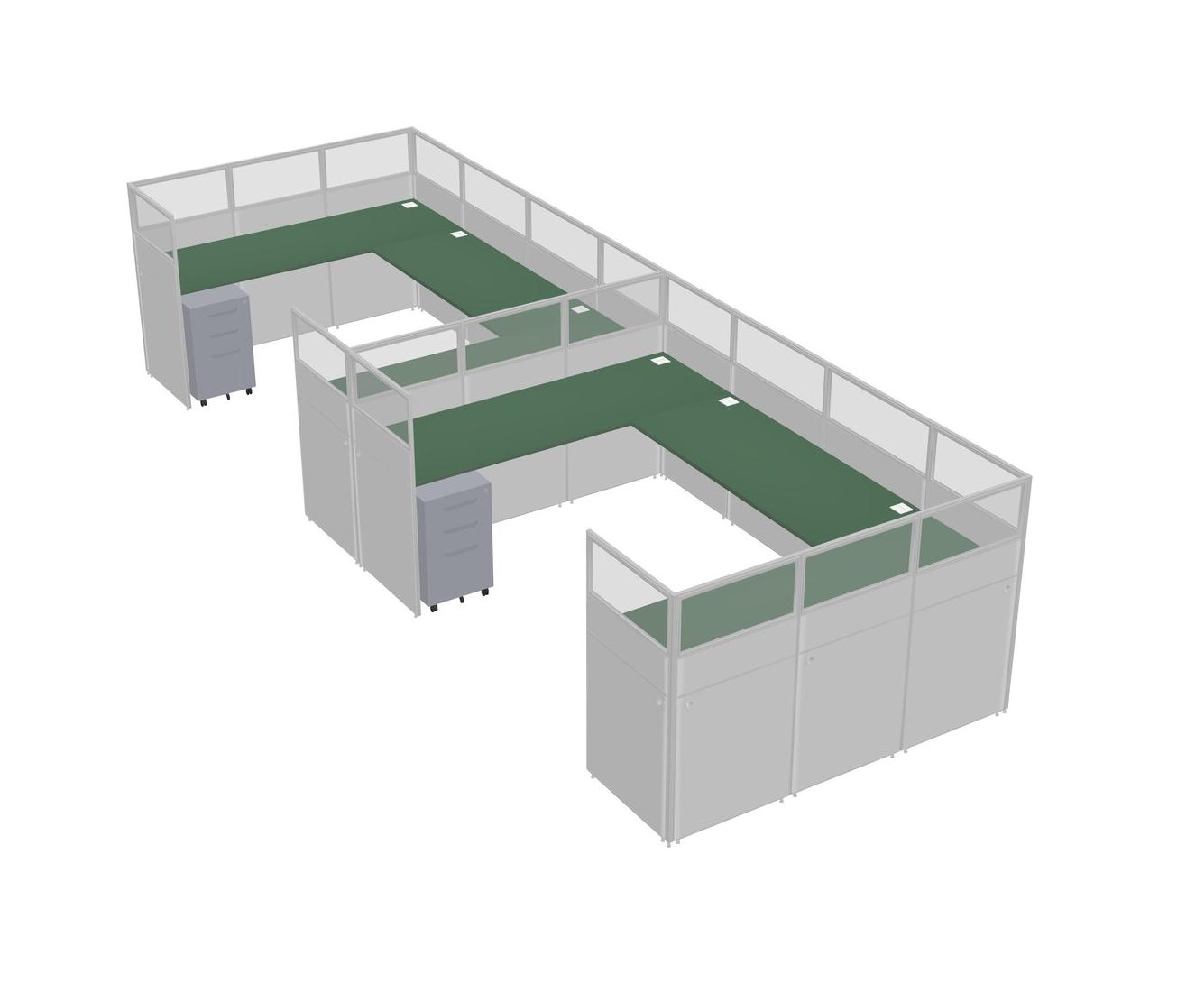 Green U-shaped Panel System For 2 Person + Metal Mobile Drawers For 2 User(s)