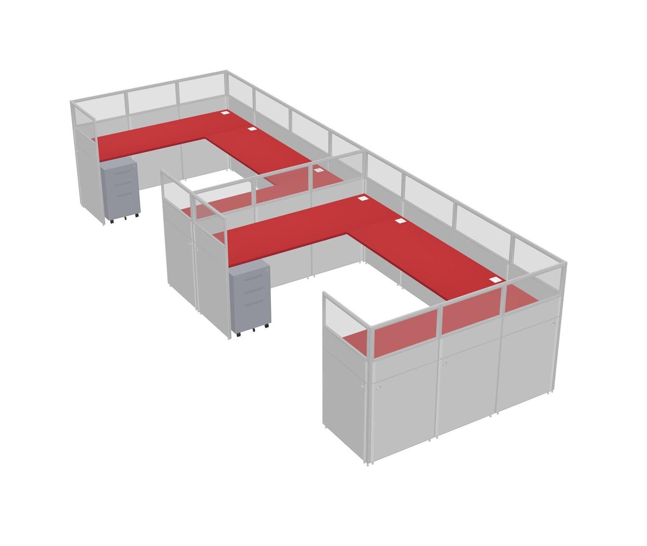 Prism Red U-shaped Panel System For 2 Person + Metal Mobile Drawers For 2 User(s)