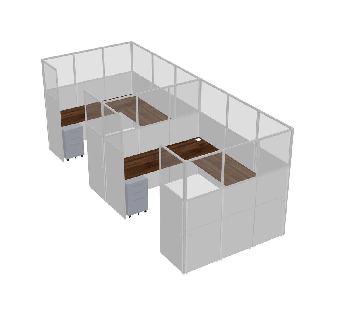 Columbia Walnut U-shaped Panel System For 2 Person + Metal Mobile Drawers For 2 User(s)