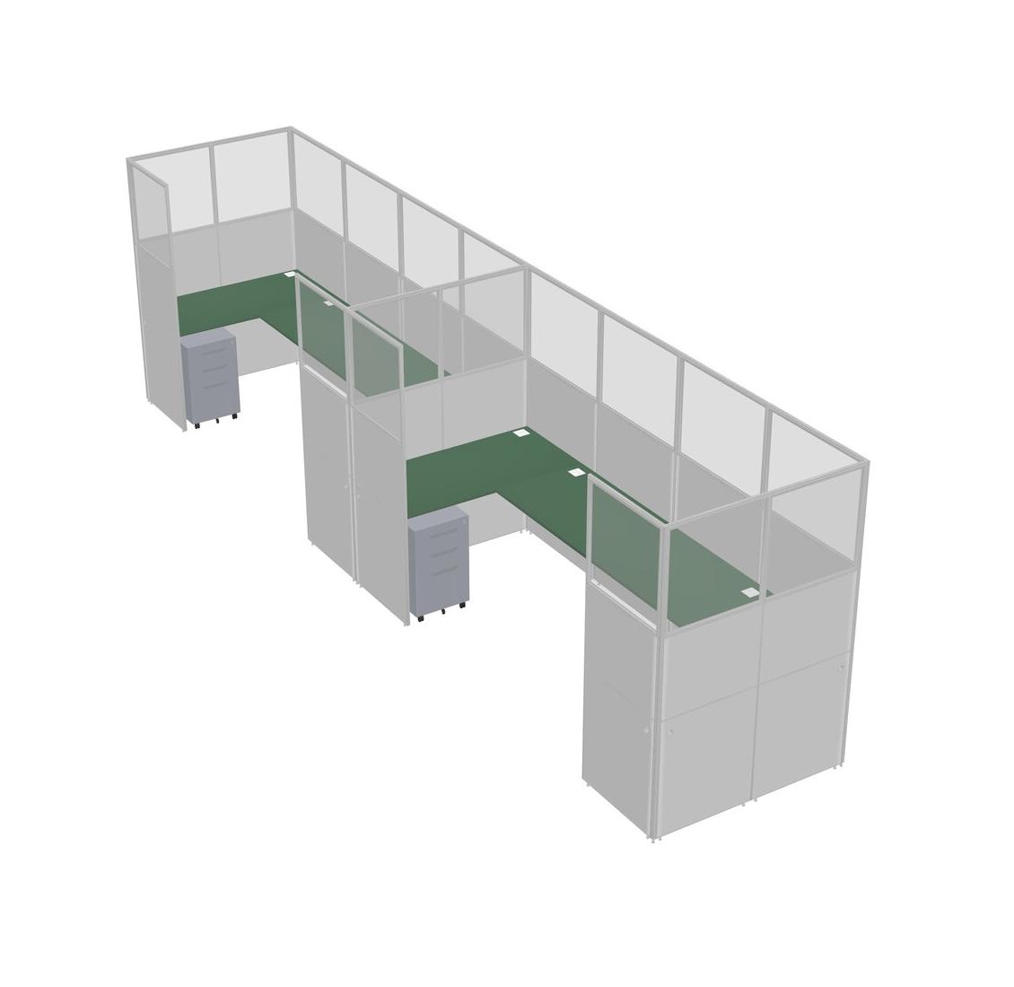 Green U-shaped Panel System For 2 Person + Metal Mobile Drawers For 2 User(s)