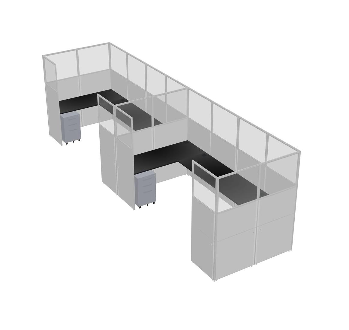 Black U-shaped Panel System For 2 Person + Metal Mobile Drawers For 2 User(s)