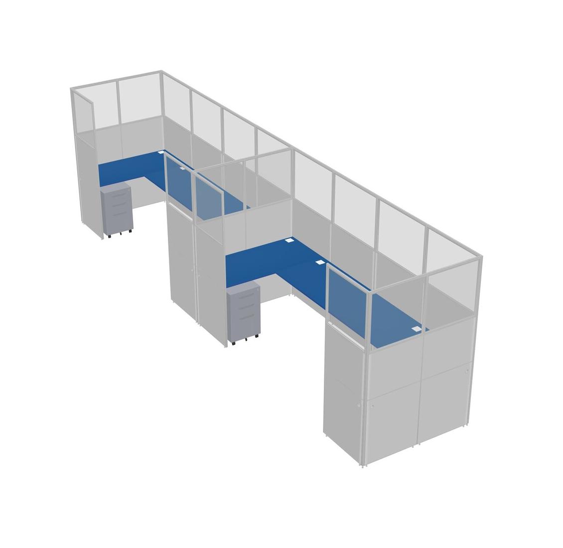 Prism Blue U-shaped Panel System For 2 Person + Metal Mobile Drawers For 2 User(s)