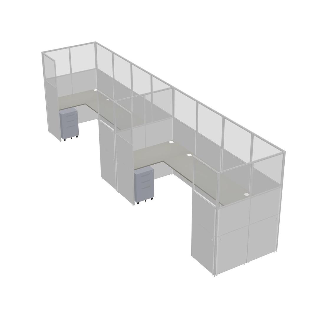 Grey Shadows U-shaped Panel System For 2 Person + Metal Mobile Drawers For 2 User(s)