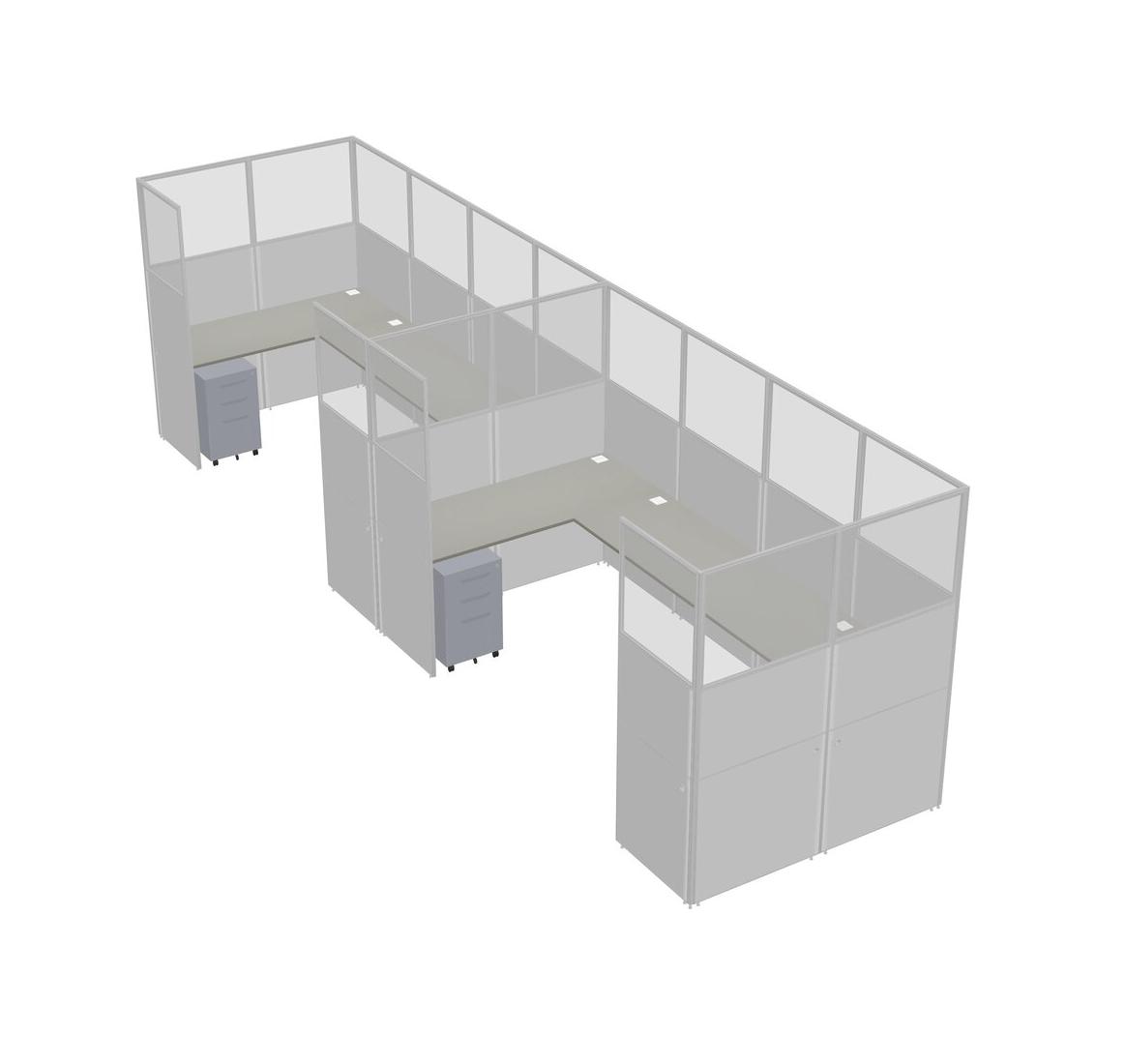 Grey Shadows U-shaped Panel System For 2 Person + Metal Mobile Drawers For 2 User(s)