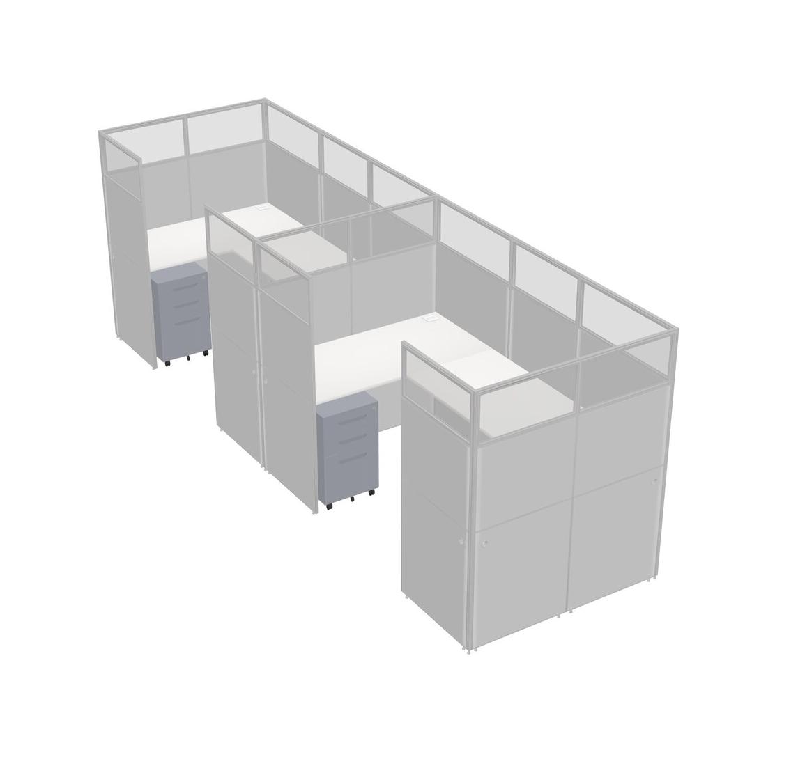 White U-shaped Panel System For 2 Person + Metal Mobile Drawers For 2 User(s)