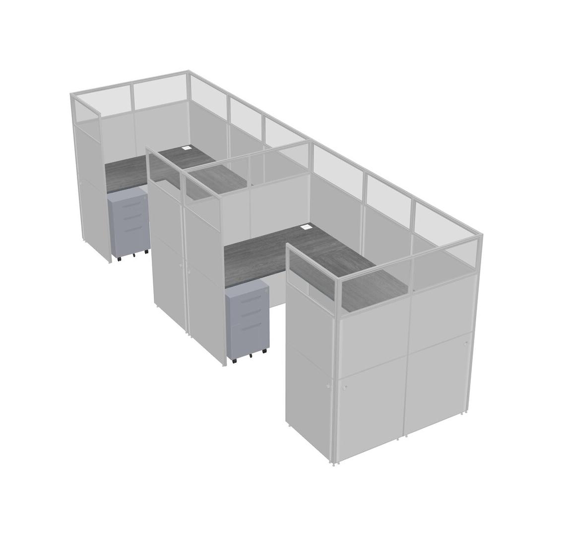 Grey U-shaped Panel System For 2 Person + Metal Mobile Drawers For 2 User(s)