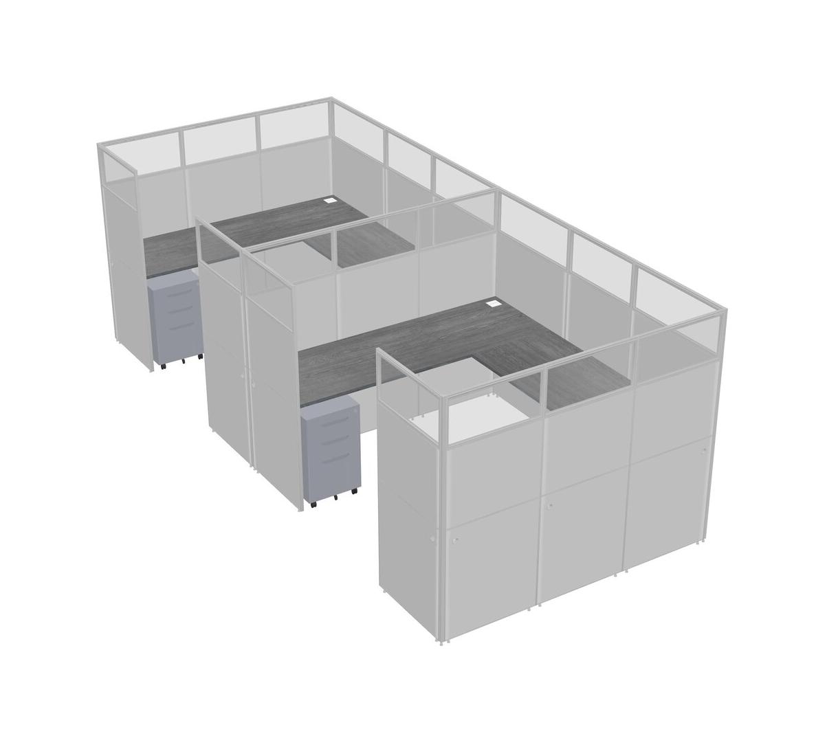Grey U-shaped Panel System For 2 Person + Metal Mobile Drawers For 2 User(s)