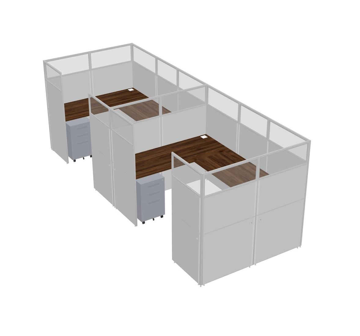 Columbia Walnut U-shaped Panel System For 2 Person + Metal Mobile Drawers For 2 User(s)