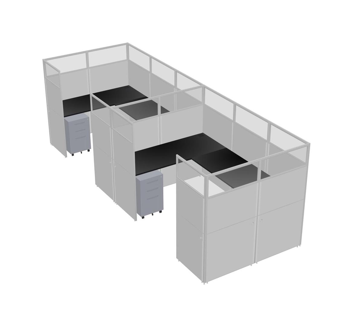 Black U-shaped Panel System For 2 Person + Metal Mobile Drawers For 2 User(s)