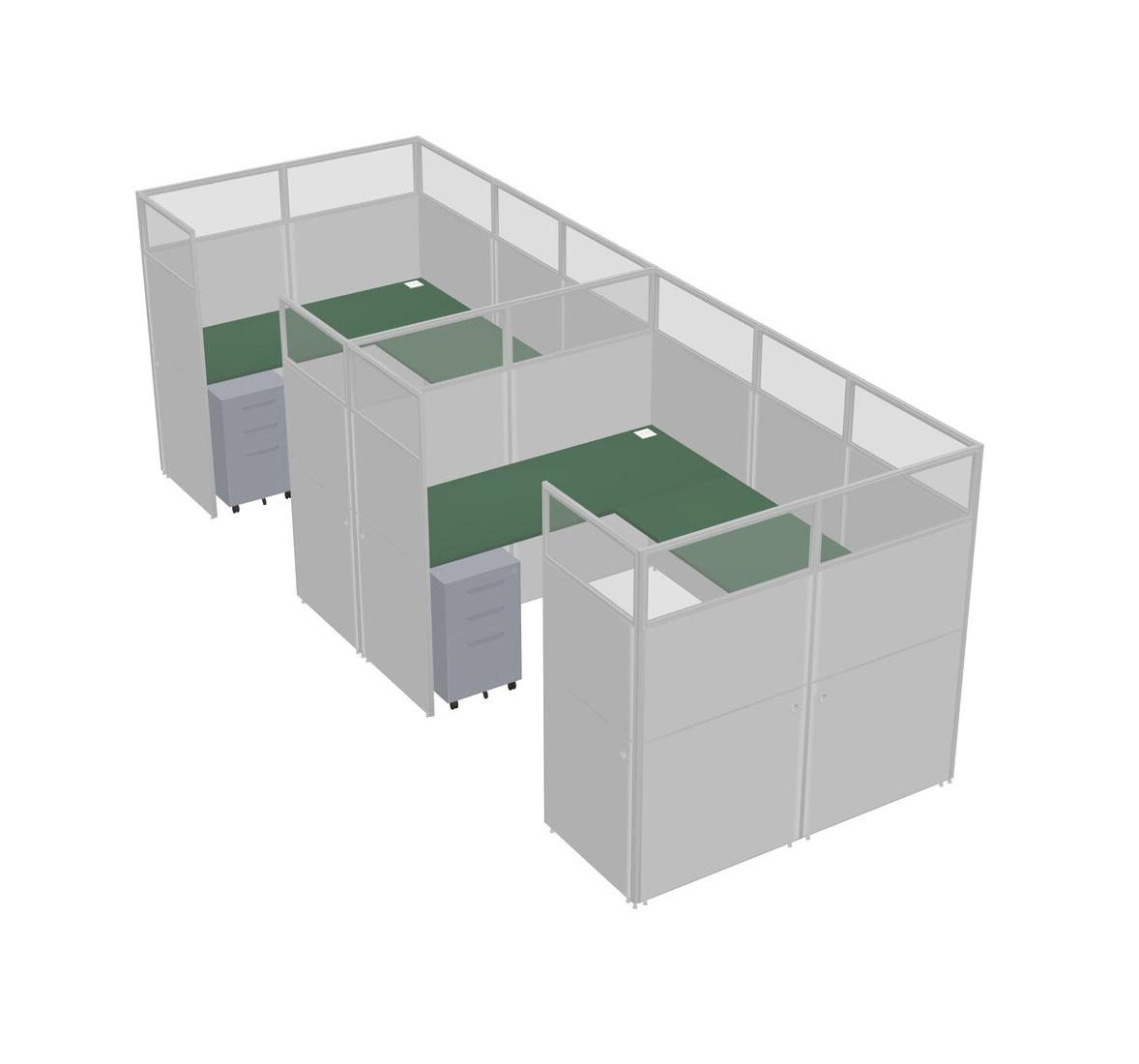 Green U-shaped Panel System For 2 Person + Metal Mobile Drawers For 2 User(s)