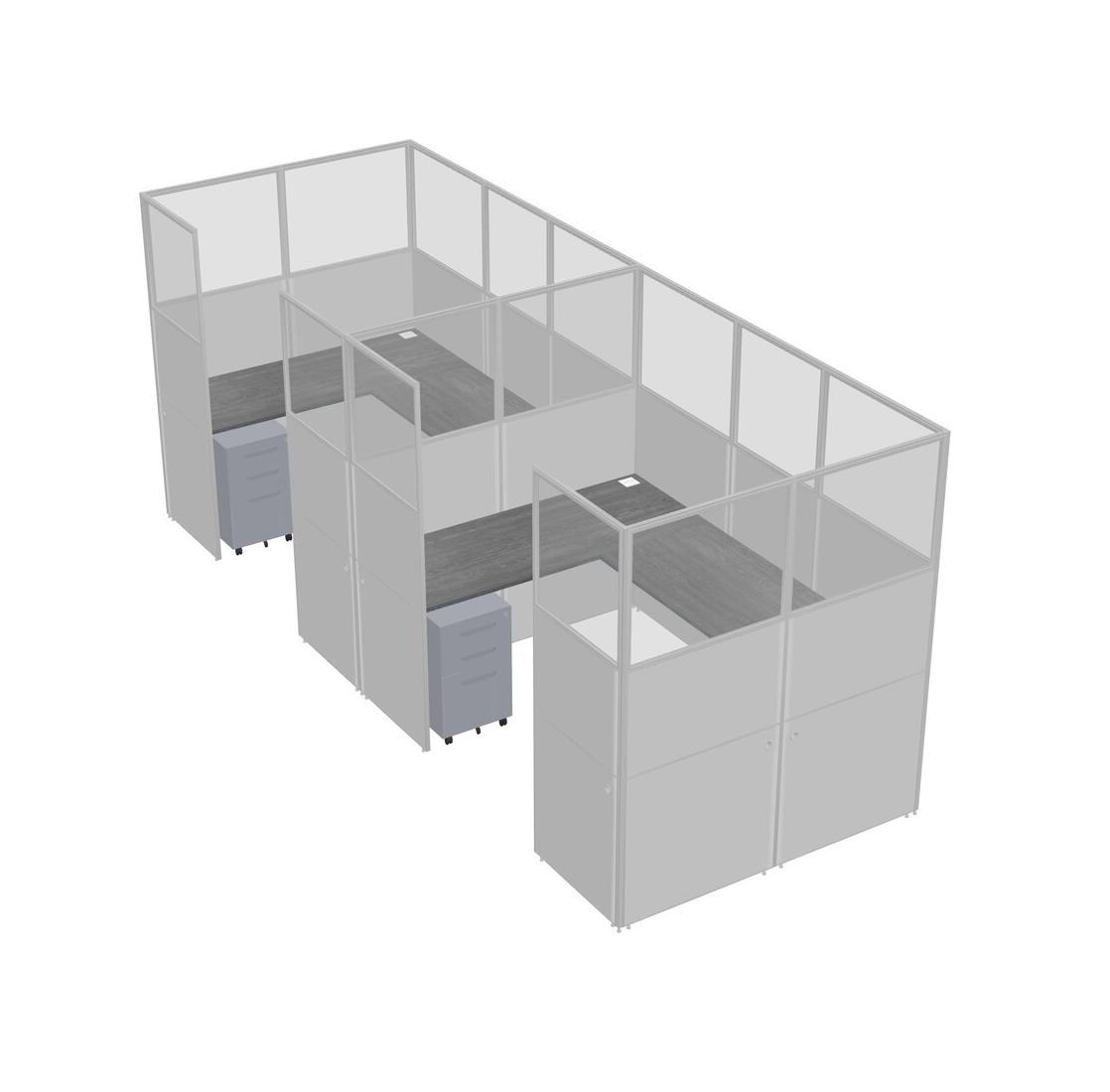 Grey U-shaped Panel System For 2 Person + Metal Mobile Drawers For 2 User(s)