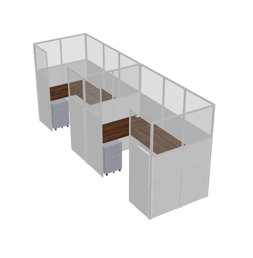 Columbia Walnut U-shaped Panel System For 2 Person + Metal Mobile Drawers For 2 User(s)