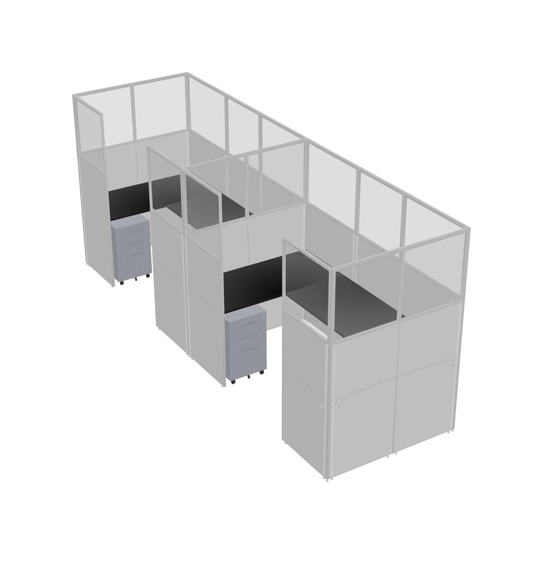 Black U-shaped Panel System For 2 Person + Metal Mobile Drawers For 2 User(s)