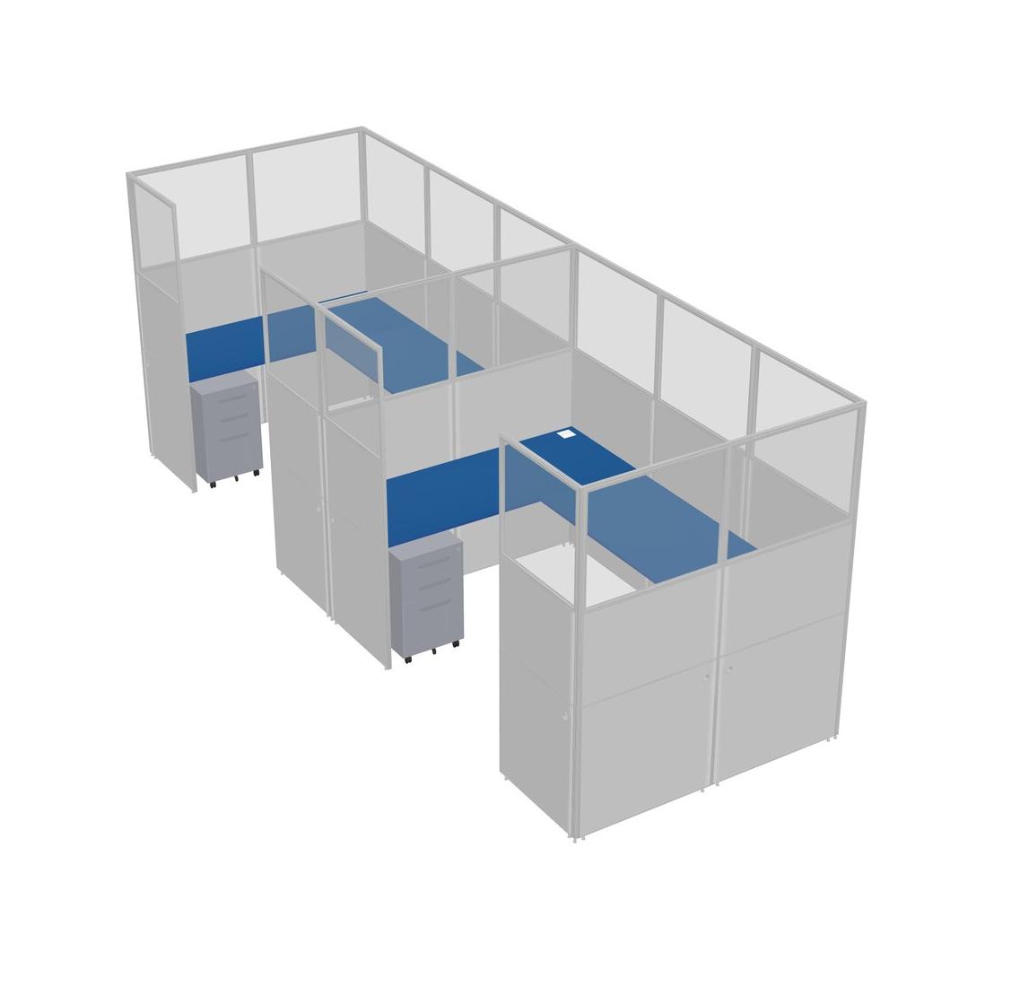 Prism Blue U-shaped Panel System For 2 Person + Metal Mobile Drawers For 2 User(s)