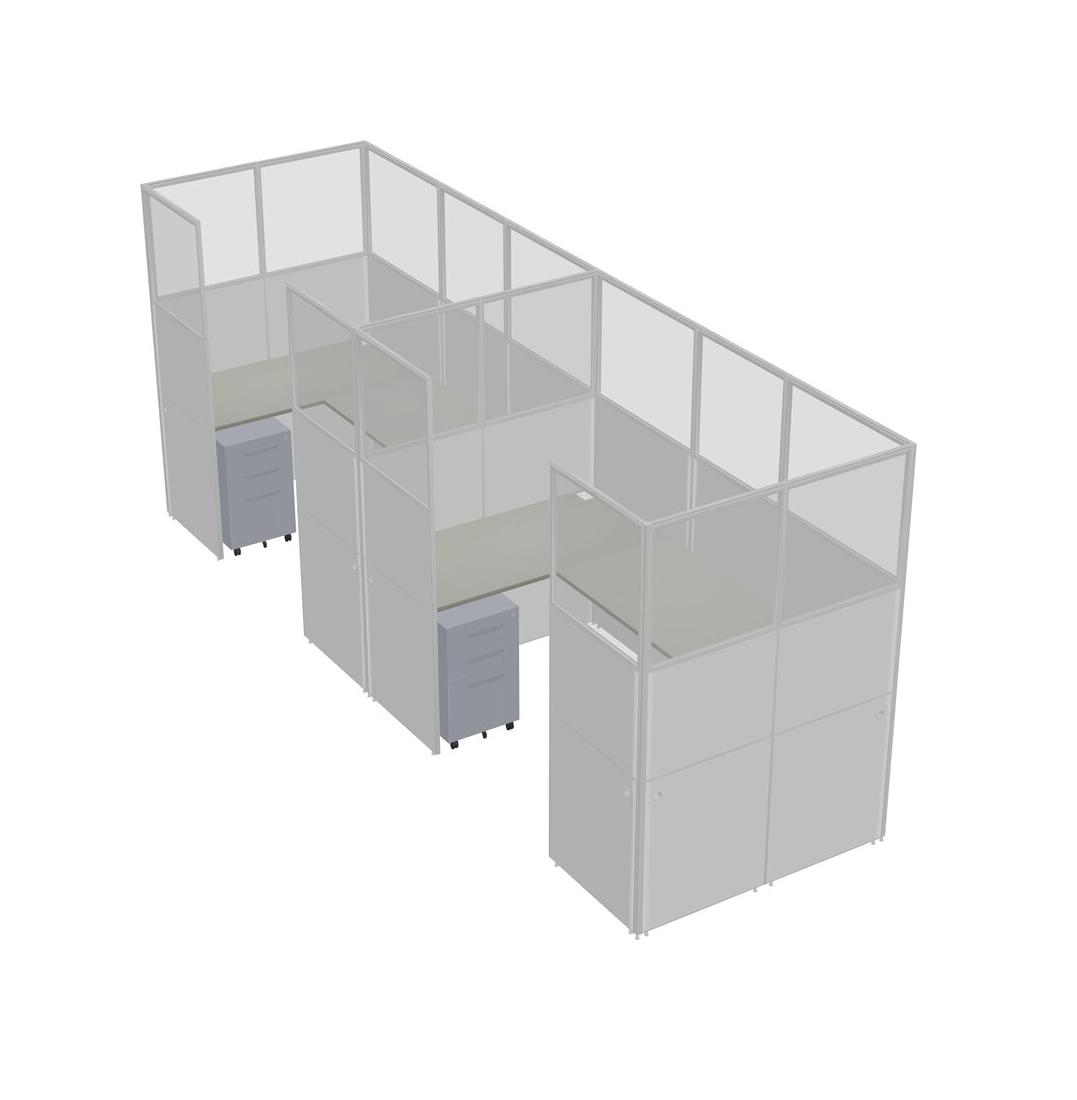 Grey Shadows U-shaped Panel System For 2 Person + Metal Mobile Drawers For 2 User(s)