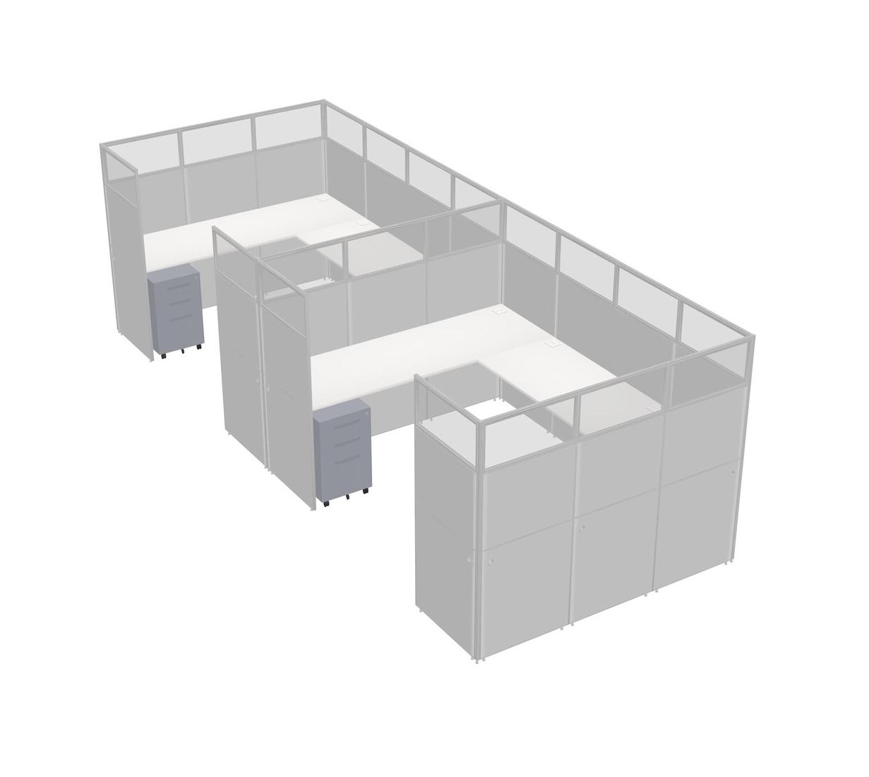 White U-shaped Panel System For 2 Person + Metal Mobile Drawers For 2 User(s)