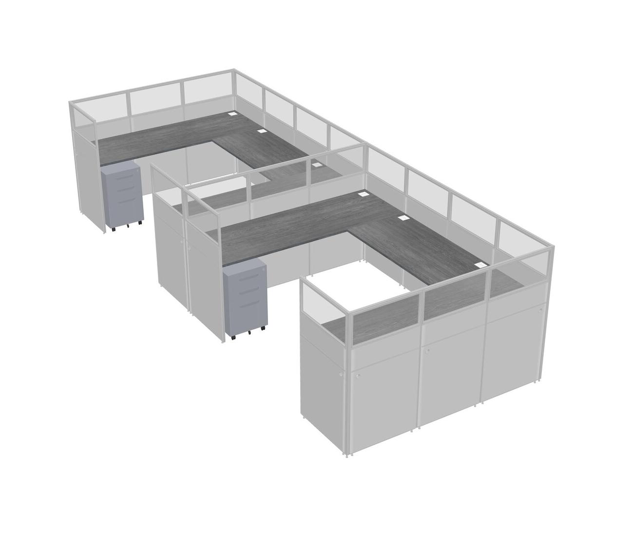 Grey U-shaped Panel System For 2 Person + Metal Mobile Drawers For 2 User(s)
