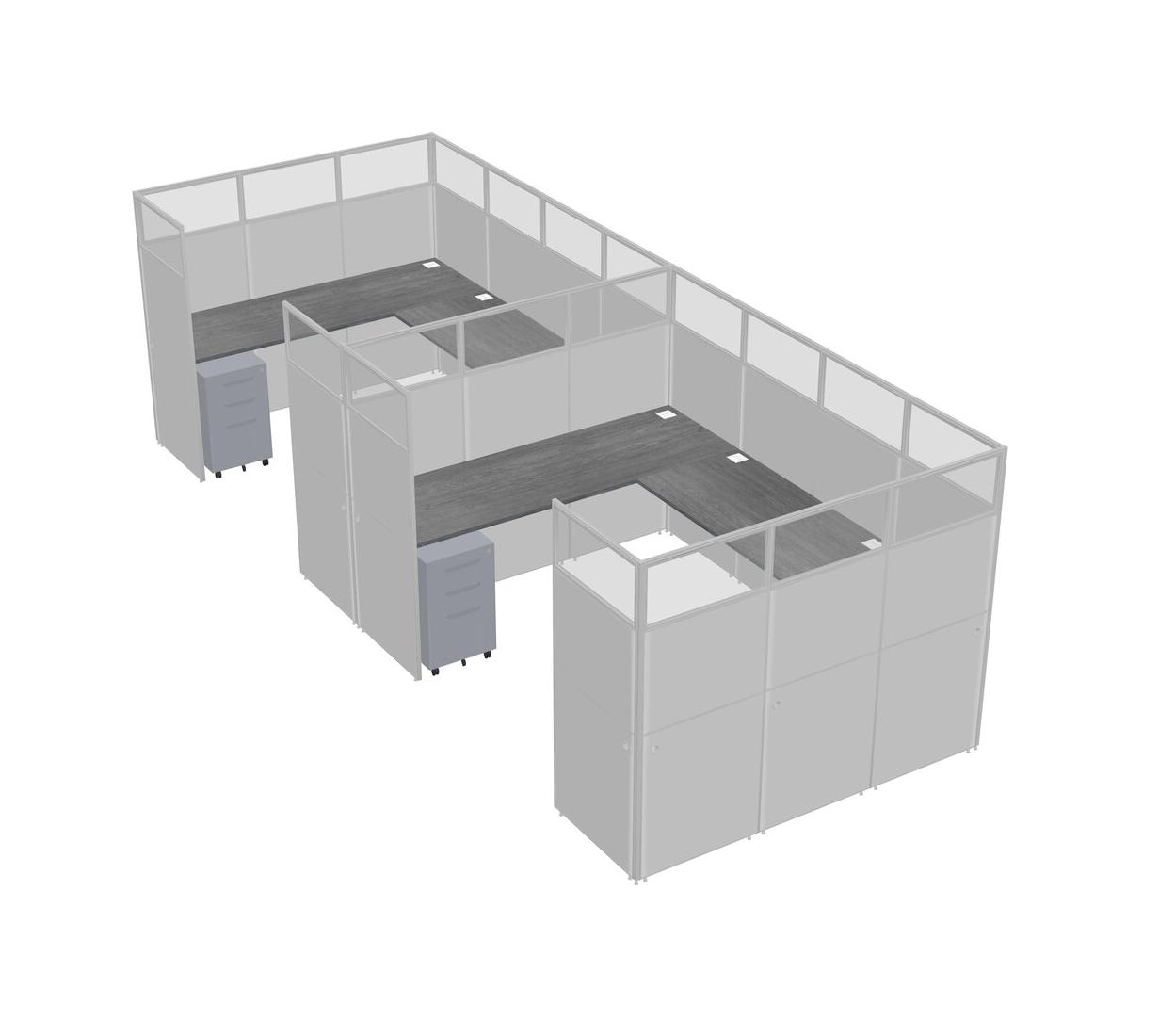 Grey U-shaped Panel System For 2 Person + Metal Mobile Drawers For 2 User(s)