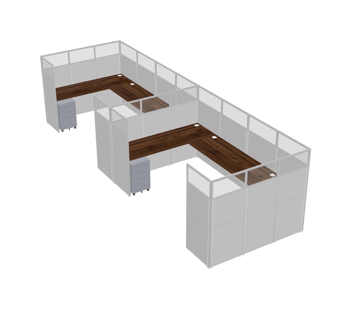 Columbia Walnut U-shaped Panel System For 2 Person + Metal Mobile Drawers For 2 User(s)