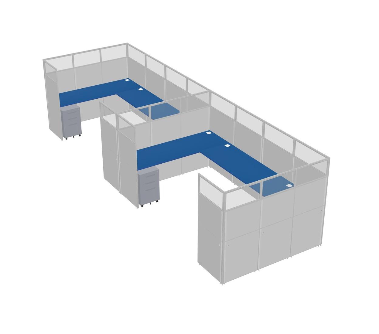 Prism Blue U-shaped Panel System For 2 Person + Metal Mobile Drawers For 2 User(s)