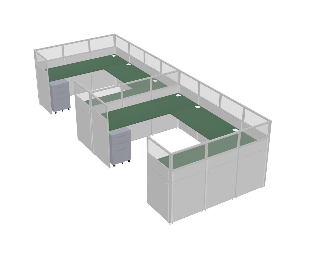 Green U-shaped Panel System For 2 Person + Metal Mobile Drawers For 2 User(s)