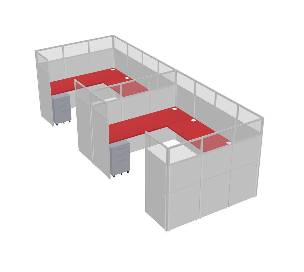 Prism Red U-shaped Panel System For 2 Person + Metal Mobile Drawers For 2 User(s)