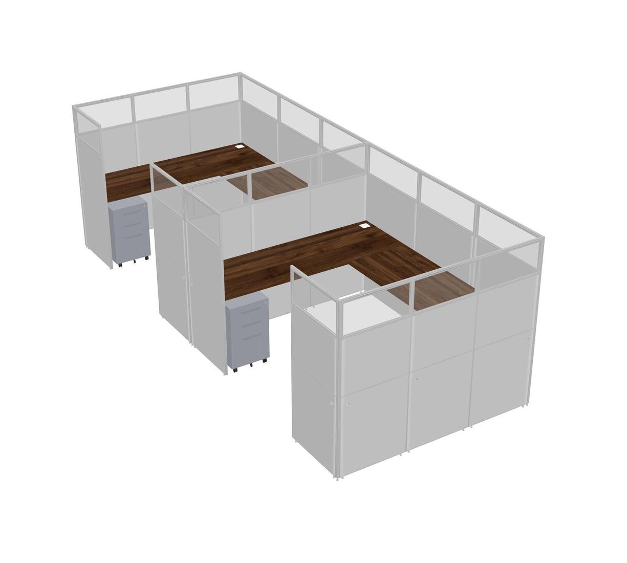 Columbia Walnut U-shaped Panel System For 2 Person + Metal Mobile Drawers For 2 User(s)