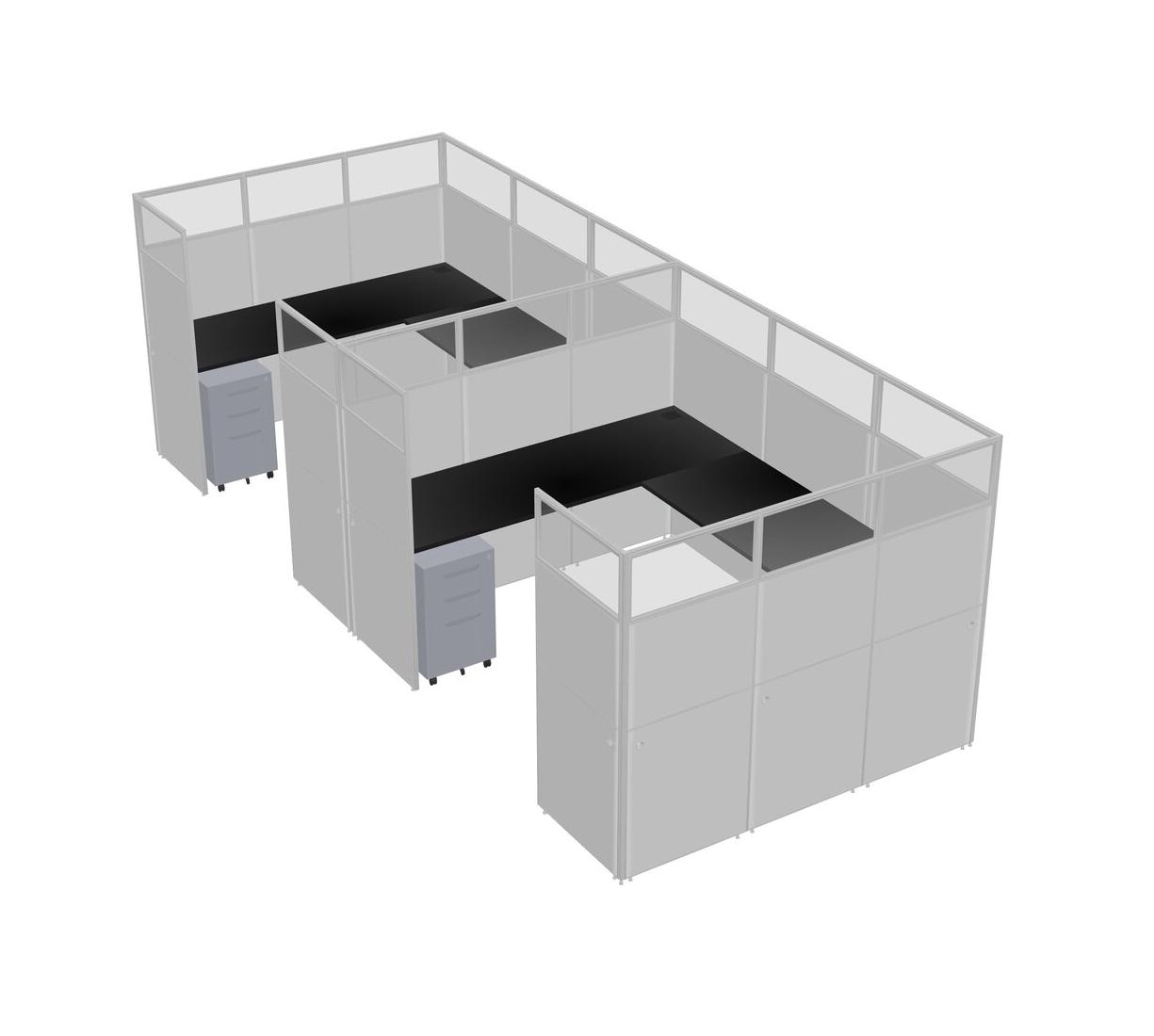 Black U-shaped Panel System For 2 Person + Metal Mobile Drawers For 2 User(s)