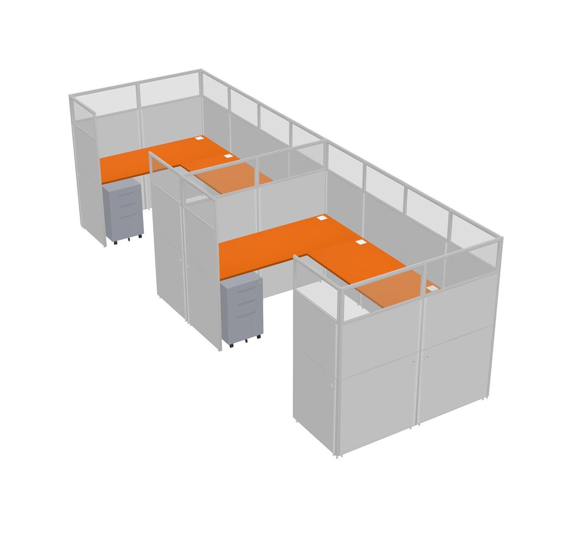 Orange U-shaped Panel System For 2 Person + Metal Mobile Drawers For 2 User(s)
