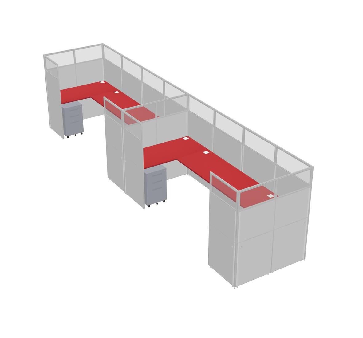 Prism Red U-shaped Panel System For 2 Person + Metal Mobile Drawers For 2 User(s)