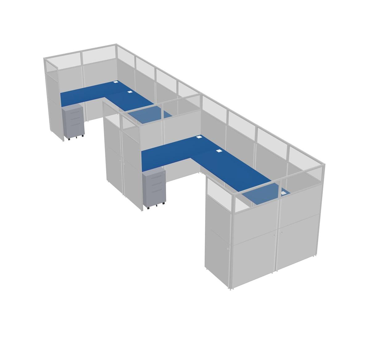 Prism Blue U-shaped Panel System For 2 Person + Metal Mobile Drawers For 2 User(s)