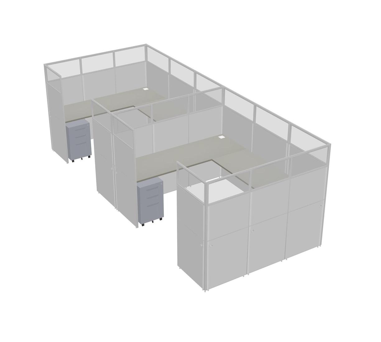 Grey Shadows U-shaped Panel System For 2 Person + Metal Mobile Drawers For 2 User(s)