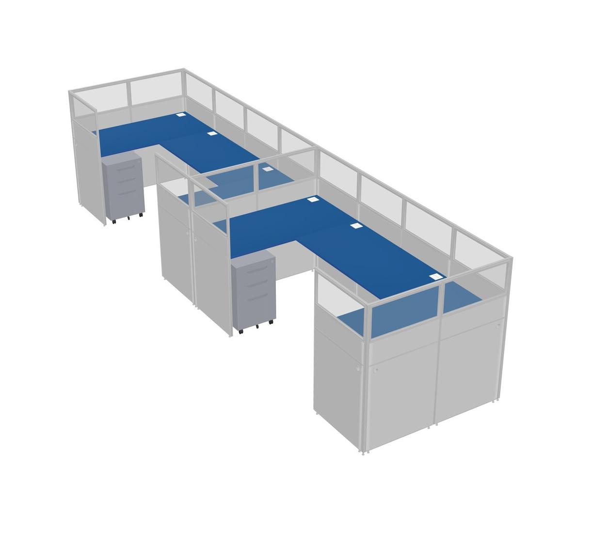 Prism Blue U-shaped Panel System For 2 Person + Metal Mobile Drawers For 2 User(s)
