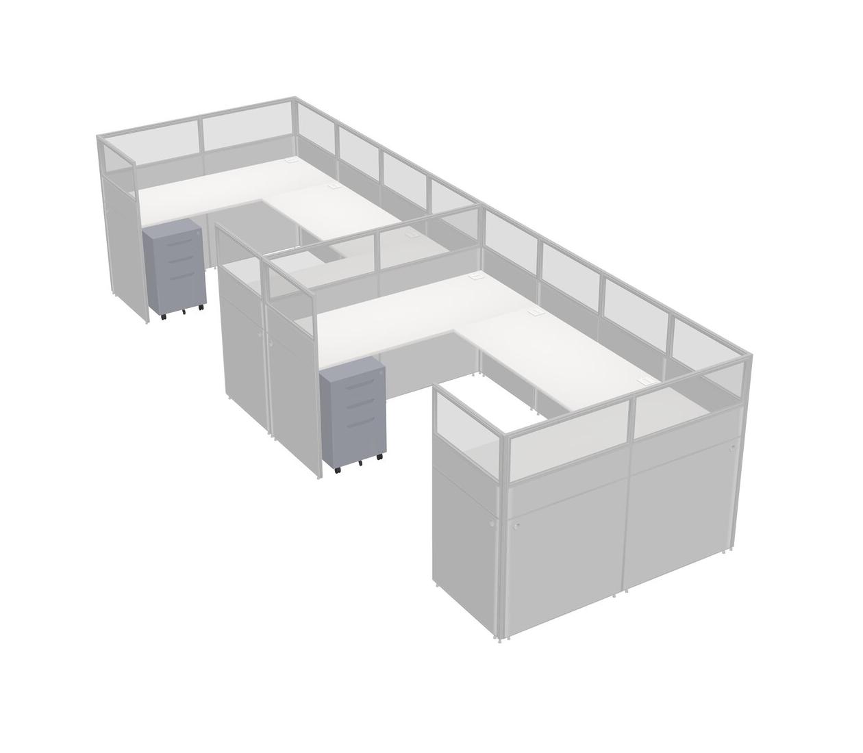 White U-shaped Panel System For 2 Person + Metal Mobile Drawers For 2 User(s)