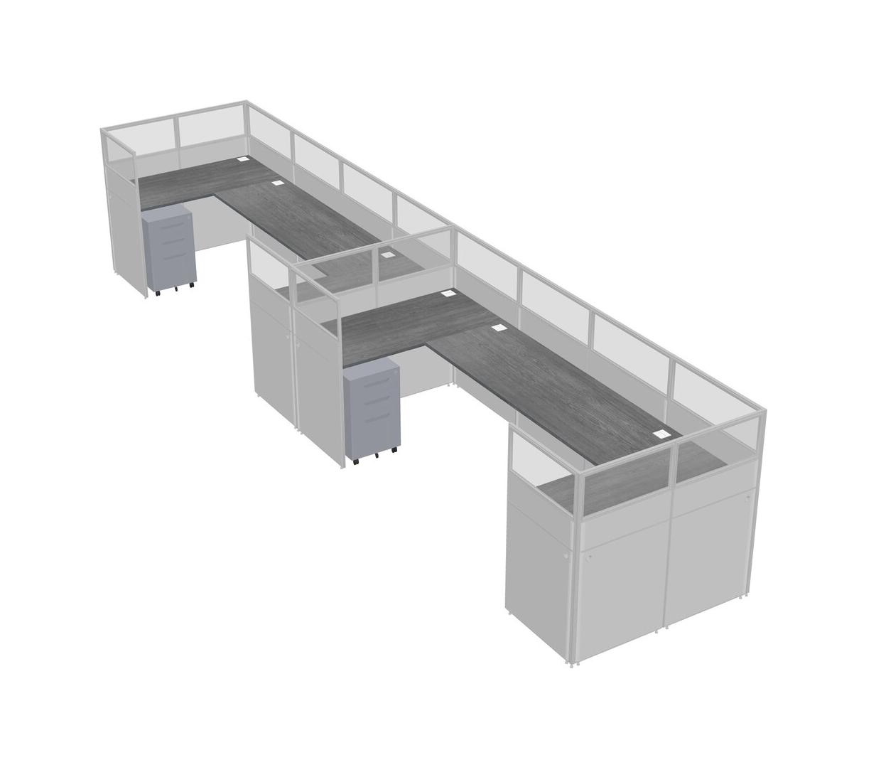 Grey U-shaped Panel System For 2 Person + Metal Mobile Drawers For 2 User(s)