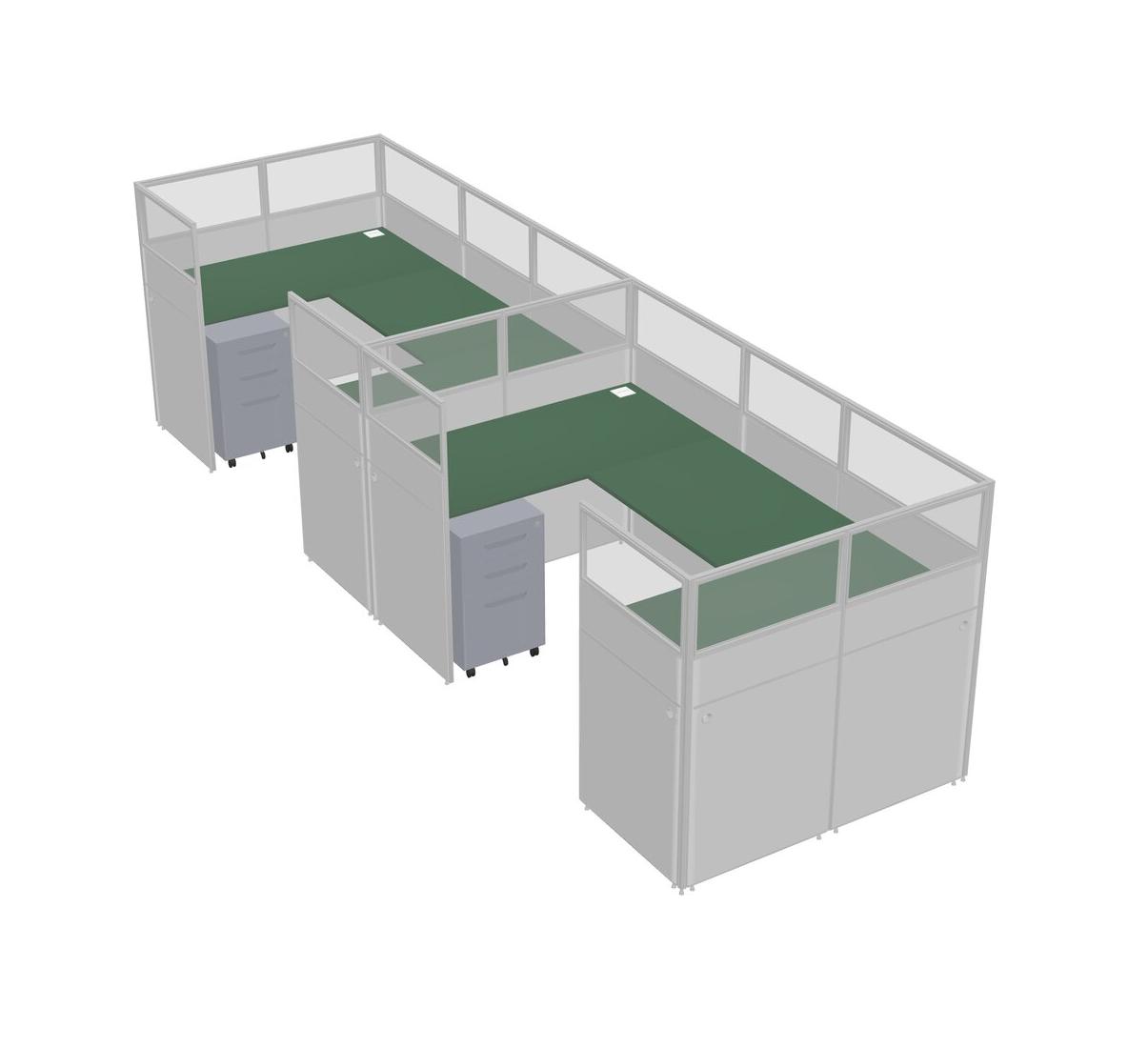 Green U-shaped Panel System For 2 Person + Metal Mobile Drawers For 2 User(s)