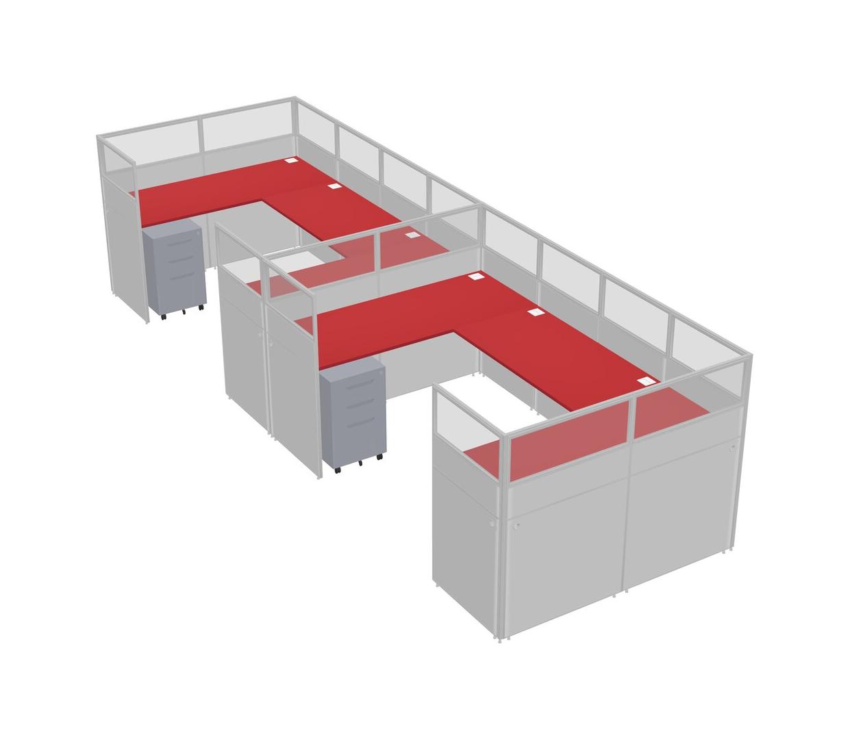 Prism Red U-shaped Panel System For 2 Person + Metal Mobile Drawers For 2 User(s)