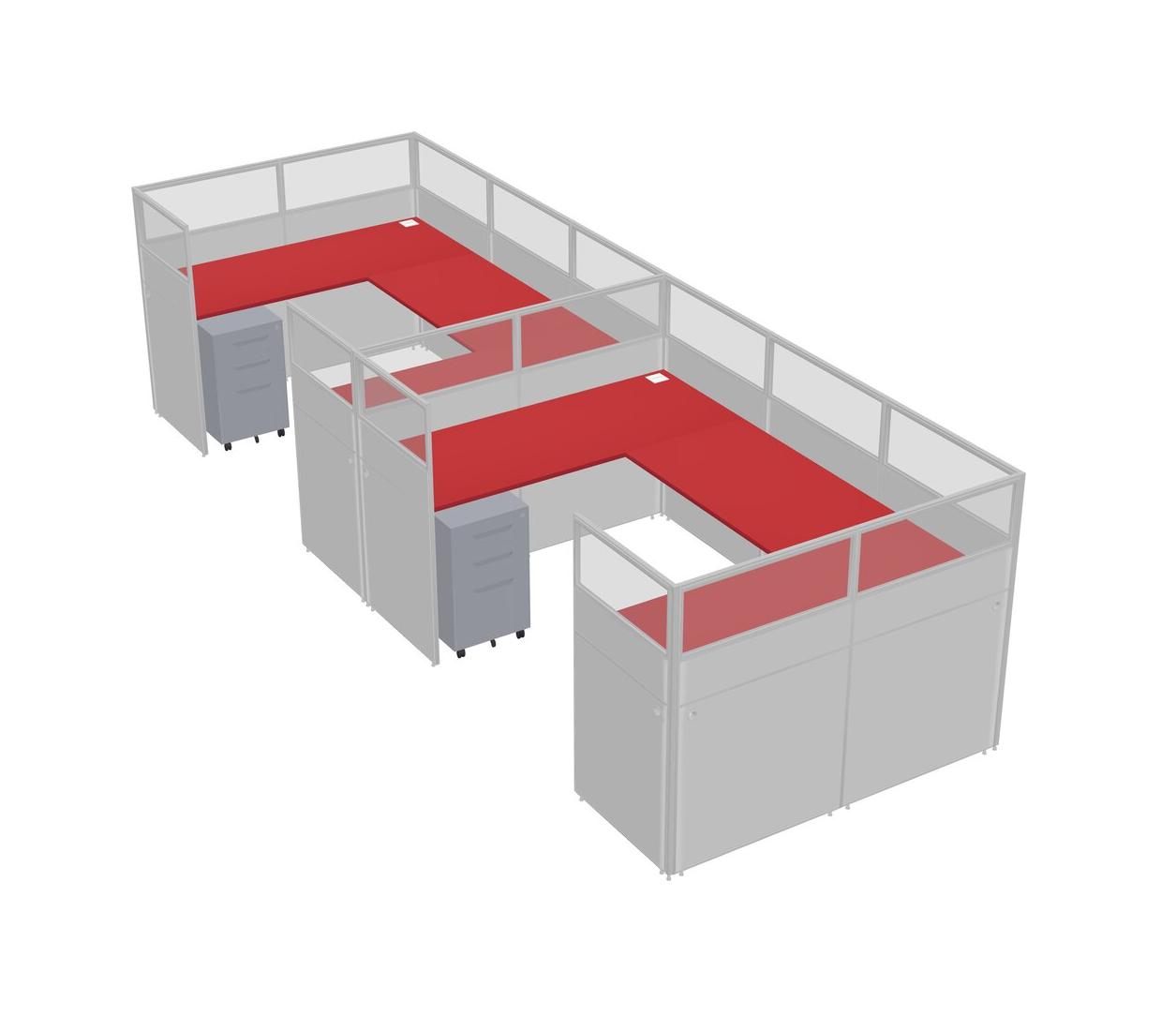 Prism Red U-shaped Panel System For 2 Person + Metal Mobile Drawers For 2 User(s)